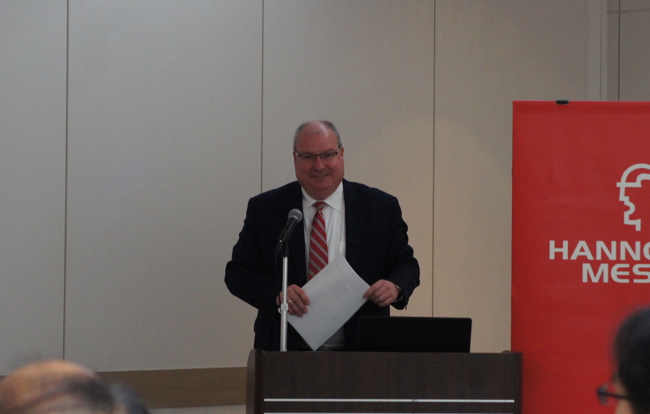 ドイツメッセ ハノーバーメッセ国際関係担当部長マルコ・ジーベルト氏は、はじめに産業とハノーバーメッセを取り巻く環境について、「発展が目覚ましく、変化に驚いている。近年はコボット(協働ロボット)やAI、スマート技術、Eモビリティなど、さまざまなテーマが取り上げられているが、未来の産業はネットワーク化であり、お互いがなくては発展ができなくなっている」とし、産業においては共創・コラボレーションが重要性を増していると指摘。その上でハノーバーメッセ2019のテーマを「Integrated Industry – Industrial Intelligence」(インテグレーテッドインダストリー インダストリアルインテリジェンス)と発表。ハノーバーメッセ2018では統合化や知能化がキーポイントになるとした。