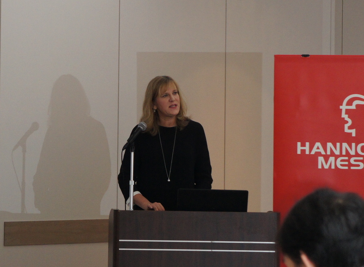 カンファレンスでは、はじめに主催であるドイツメッセ株式会社ハノーバーメッセ 国際関係担当部長のマルコ・ジーベルト氏が、ハノーバーメッセの見どころを紹介。続いて2019年のパートナー国を務めるスウェーデンの取り組みについてスウェーデン大使館 商務・投資部 商務参事官 セシリア・レイラム氏が説明。その後、ハノーバーメッセに出展している日本企業を代表してCKD 営業本部 販売促進部 部長 水野純一氏が出展の成果について話し、最後にハノーバーメッセの日本窓口となる日本能率協会ドイツメッセ日本代表部から部長の竹生学史氏が話した。