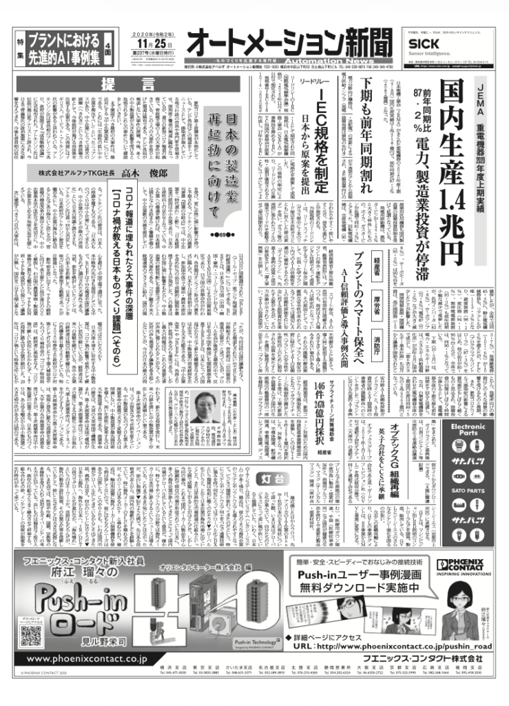 【オートメーション新聞 No.237】2020年11月25日発行は、下のボタンからダウンロードできます