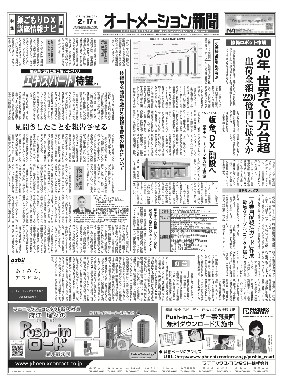 【オートメーション新聞 No.245】2021年2月17日発行は、下のボタンからダウンロードできます