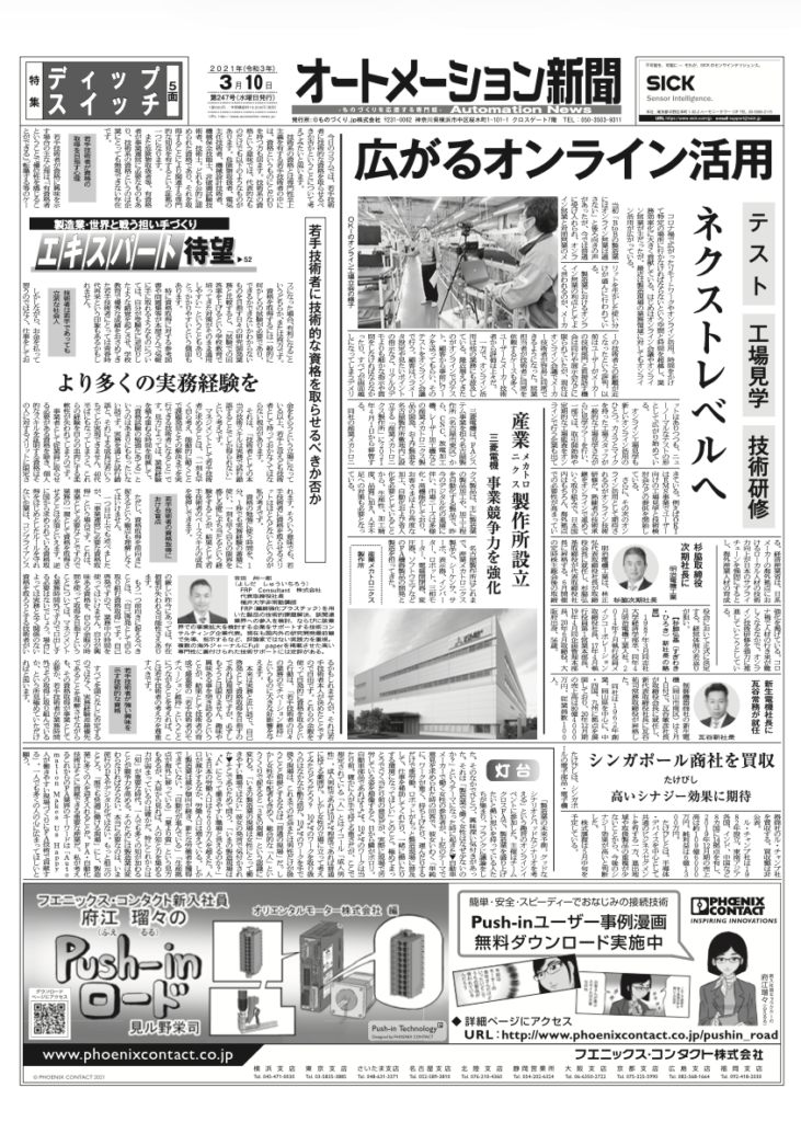 【オートメーション新聞No.247】広がるオンライン活用:工場立会・技術研修も非対面へ / アルファTKG、世界初の「板金IoT・DX実証加工センター」開設 / 安川電機「Σ-Xシリーズ」新発売(2021年3月10日)
