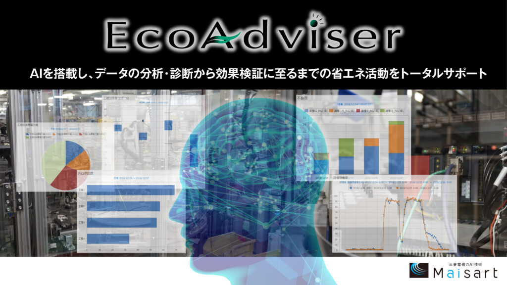 省エネ分析・診断アプリケーション「EcoAdviser」は、同社のAI技術 “Maisart”を活用し、エネルギーロス抽出やエネルギーロス要因診断によって省エネ活動のPDCAをトータルサポートできるもの。生産現場等において蓄積した収集データの見える化だけでなく、AIによるエネルギーロス抽出や要因診断で効果的な省エネ活動を実現できる。