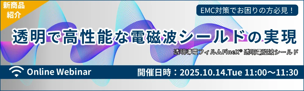 セミナーでは、独自技術「FineX」の工法を応用して高い透明性と高いシールド性能を両立した「透明電磁波シールド」について、窓・保護カバーに後貼りできるなど、現場で導入しやすいノイズ対策の新しい選択肢を紹介する。