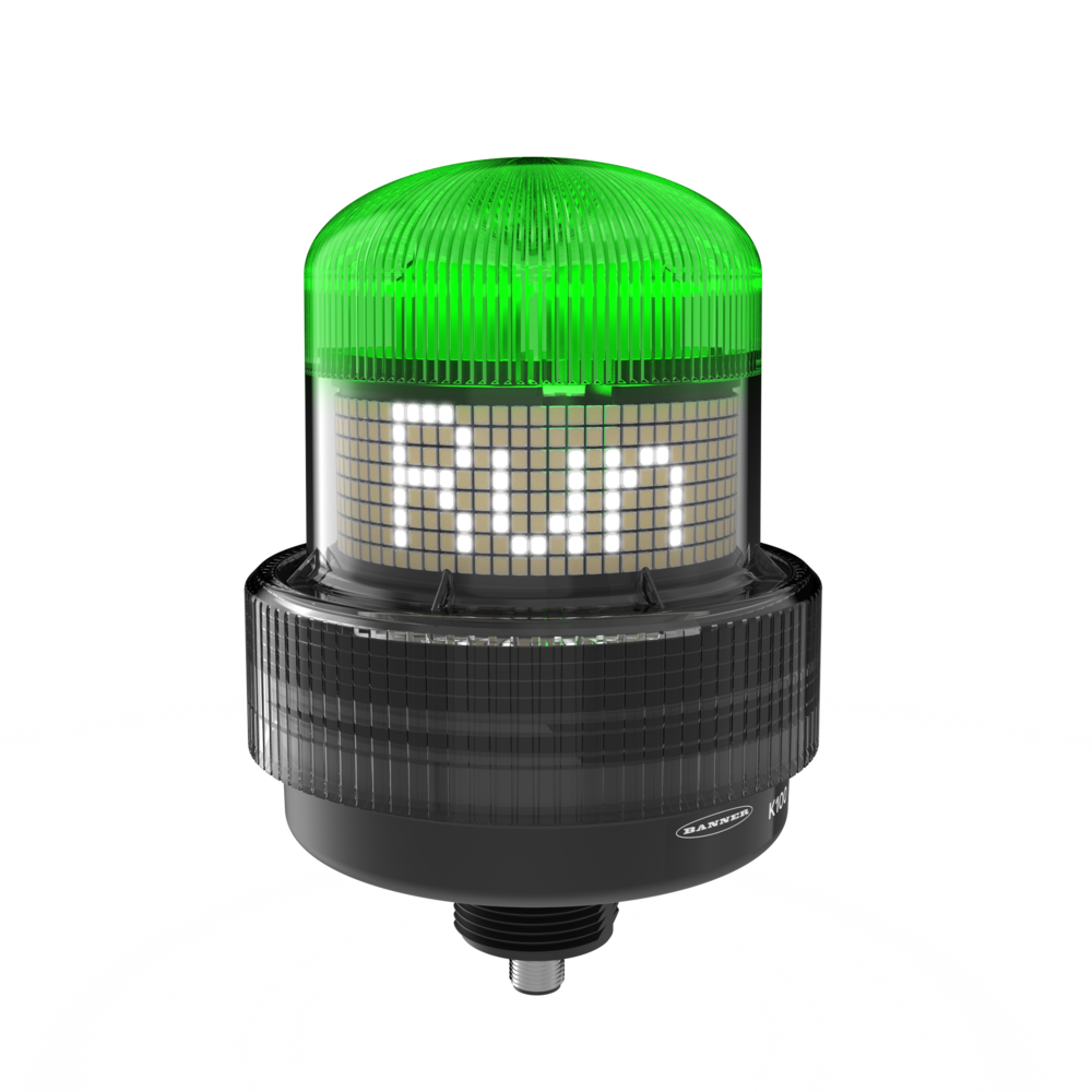 バナーエンジニアリングは、マルチカラー表示灯と文字情報を表示するディスプレイを一体化した「K100プログラマブルディスプレイビーコン」を発売した。