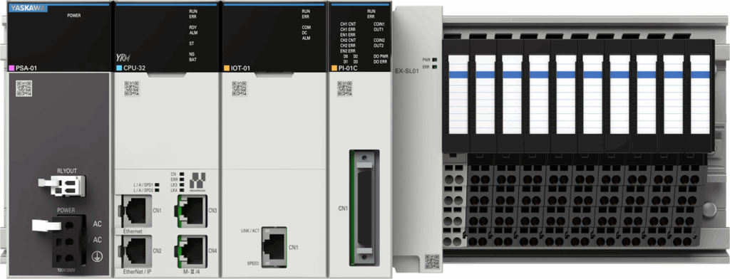 また、直感的なユーザーインターフェースを持つエンジニアリング環境「YRM Studio」を提供するほか、豊富なSLIO I/Oシリーズに対応し、多彩なシステム構築やリモートI/Oとしての分散配置も可能。オプションユニットにより各種フィールドネットワーク(EtherNet/IP, PROFINET, CC-Link IE Fieldなど)にも対応する。