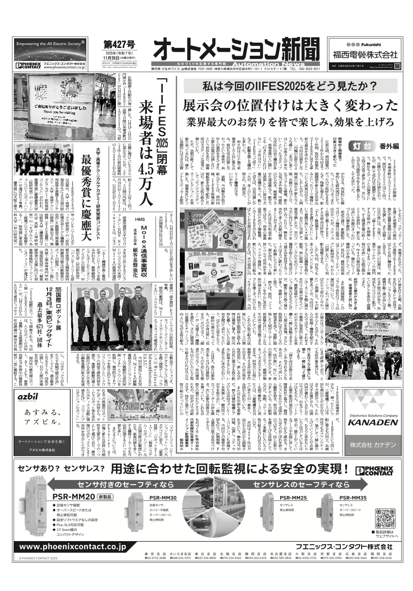 【オートメーション新聞No.427】IIFES2025 閉幕 来場者は4.5万人 / 【灯台 番外編】私は今回のIIFES2025をどう見たか? / 大学・高専テクニカルアカデミー研究発表コンテスト 最優秀賞に慶應大 / HMS Molex通信事業買収 など(2025年11月26日)