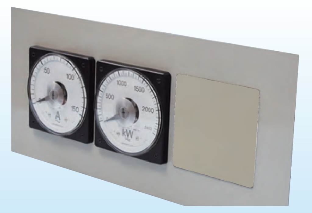 ほかにも三菱電機、東洋計器、富士電機など各主要メーカーのメーターに適合するサイズを豊富に取り揃え、塗装色も、5Y7/1色のほか、標準的な黒色や2.5Y9/1色もラインアップしており、盤面の美観を損なわずに設置できる。