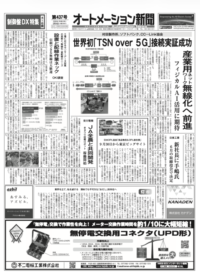 【オートメーション新聞No.437】村田製作所、ソフトバンク、CC―Link協会 世界初「TSN over 5G」接続実証成功 / OKI調査 工場におけるセンサーデータ収集の実態と、無線化・省配線のニーズ / 安川電機 きゅうり収穫ロボット稼働開始 / 制御盤DX特集 など(2026年3月4日)