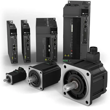 豊富なラインアップを揃え、サーボドライバは、0.1~7.5kWの11容量、パルス入力(Mタイプ)、EtherCAT通信仕様(Eタイプ)の合計22種類、サーボモータは0.1~7.5kWの11容量、ブレーキ無・有、合計22種類のラインアップから選ぶことができる。